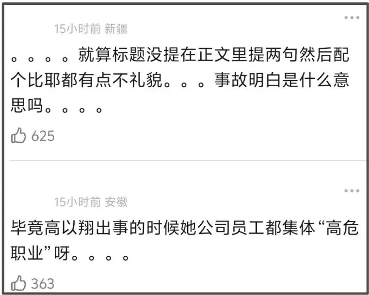 联想到高以翔意外去世之后,杨天真本人和她旗下艺人张雨绮、宋佳等人联合发布倡议书,强调演员是高危职业,遭到大批网友质疑,高危职业事件自此成了众多明星洗不白的黑历史,时隔7年时间,类似的事件再次上演,虽然没有明星参与,但从杨天真的表现看,她似乎没有意识到自身问题。