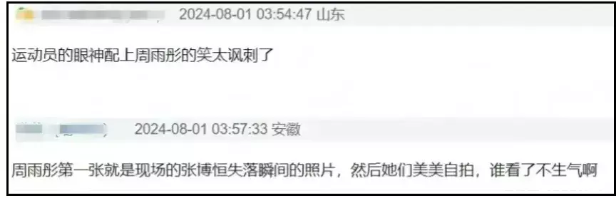 2024年巴黎奥运会,周雨彤跟着花少团到现场观赛,亲眼目睹中国体操运动员张博恒遗憾摘银,然后周雨彤做了什么呢?