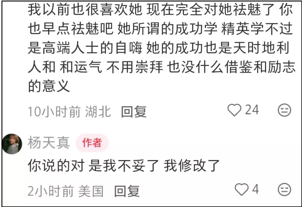 最后也是很好奇,各位觉得杨天真是真的意识到不妥,还是被骂怕了呢?围绕在她身边的类似争议不止一次了哦。